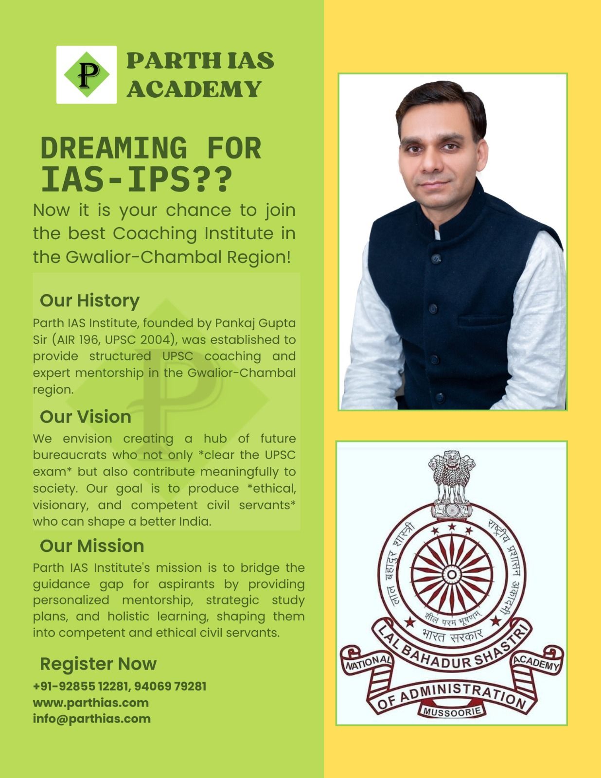 we believe that civil services preparation is more than just academics—it’s about building vision, character, and resilience. Established in Gwalior with the mission to empower aspiring IAS, IPS, and PCS officers, we are driven by a simple belief: every dedicated aspirant deserves the right guidance to achieve their dreams.