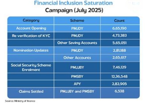 2. c) 6.65 Lakhs accounts opened in 1-month campaign for Saturation of Financial Inclusion Schemes