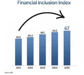 a) Financial Inclusion Index risen to 67 in 2025, up by 24.3% since 2021