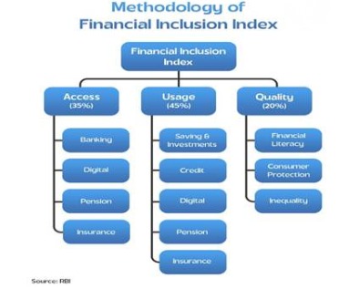 4. The index has three sub-indices: Access, Usage, and Quality, carrying respective weights of 35 percent, 45 percent, and 20 percent in the overall financial inclusion assessment.