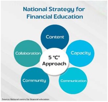 10. National Strategy for Financial Education 2020–2025 adopted a 5-C approach built around Content, Capacity, Community-led communication, Communication strategy, and Collaboration among multiple stakeholders nationwide.