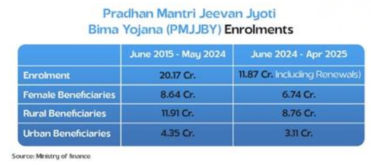 13. Pradhan Mantri Suraksha Bima Yojana reached cumulative enrolment of 50.54 crore individuals by 19 March 2025, offering accidental death and disability cover for ₹20 annually.