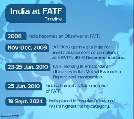 • India became 34th member of FATF in 2010.