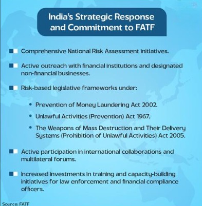 • India has declared zero tolerance towards terror financing and money laundering, working actively with FATF.