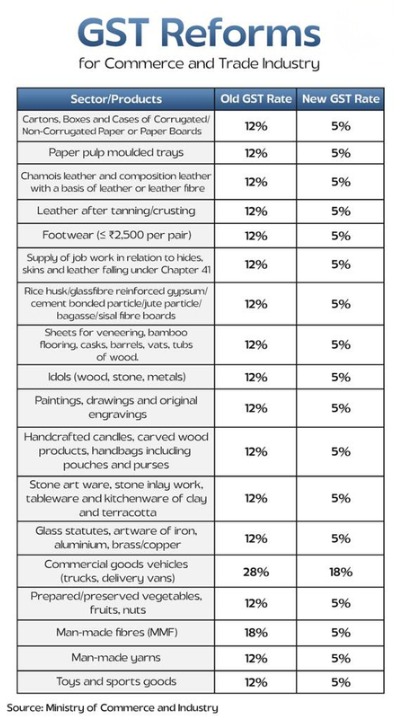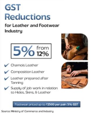 a) GST on leather, footwear, and related job work reduced from 12% to 5%.